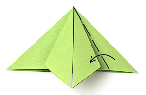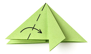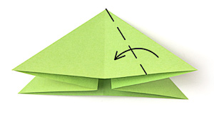 - Загни вперед угол нижнего слоя таким образом, чтобы он закрыл половину верхнего треугольника.