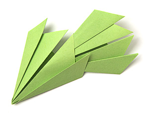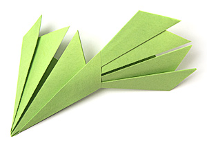 - В верхнем слое каждой заготовки образовались 4 кармашка. Острый конец заготовки можно вставить в любой из кармашков другой такой же детали.